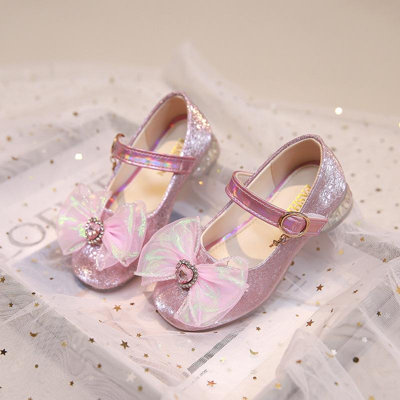 Туфли принцессы для девочек, маленькие кожаные туфли со стразами и бантом, милые розовые туфли для девочек с мягкой подошвой, изысканные и просторные элегантные туфли для девочек 29
