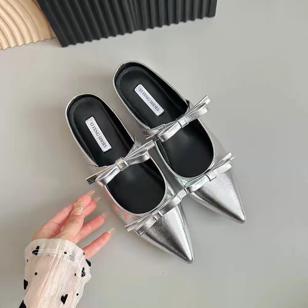 Туфли-шлепанцы женские крутые с голым острым носком, увеличивающие рост на 4 см, с двойным бантом, французские ленивые нежные, с полуоткрытым носком 40