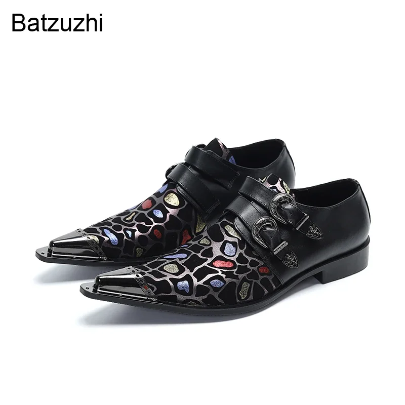 Туфли Batzuzhi мужские из натуральной кожи, официальная деловая обувь с острым металлическим носком, цвет черный, искусственная кожа, Свадебная обувь для мужчин!