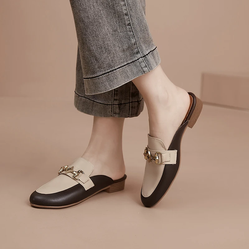 Туфли Jiovodo женские с закрытым носком, натуральная телячья кожа, шлепанцы без застежки, квадратный металлический носок, сланцы, плоская подош...