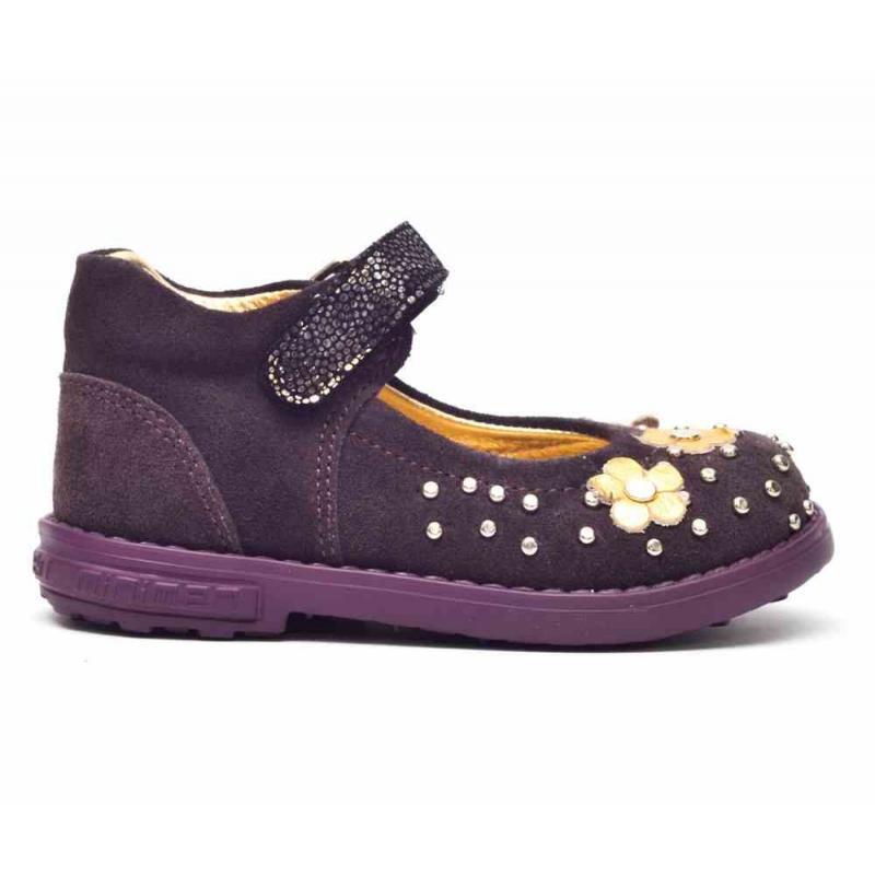 Туфельки MiniMen качественная и практичная обувь для вашей малышки. Обувь сделана из натуральной кожи: верх - замша фиолетового цвета, внутри кожаная ортопедическая стелька. Удобная фиксация на липучках позволяет подобрать обувь разной полноты и высоты свода.