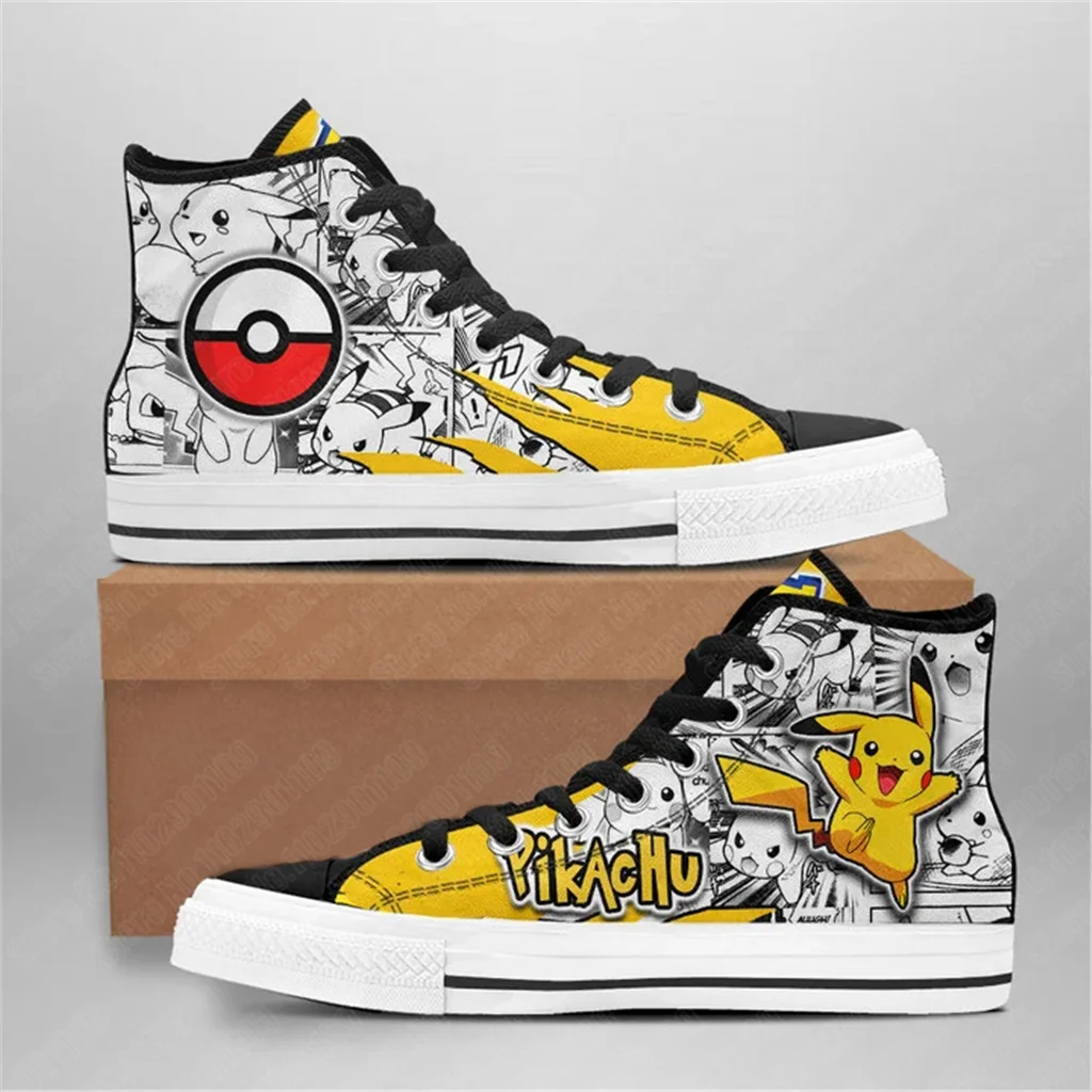 Туфли Pikachu с 3D принтом покемона для мужчин и женщин, легкие дышащие, на шнуровке, Повседневная холщовая обувь, Прямая поставка