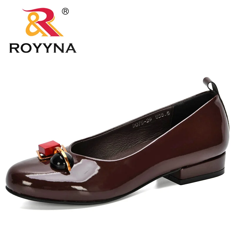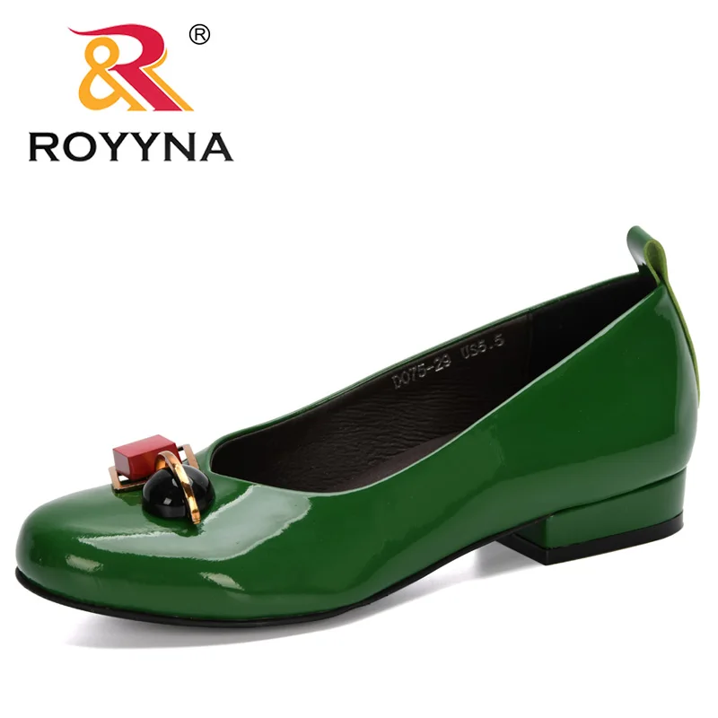 Туфли ROYYNA женские из лакированной кожи, модельные туфли-лодочки, низкий каблук, свадебные туфли, 2020