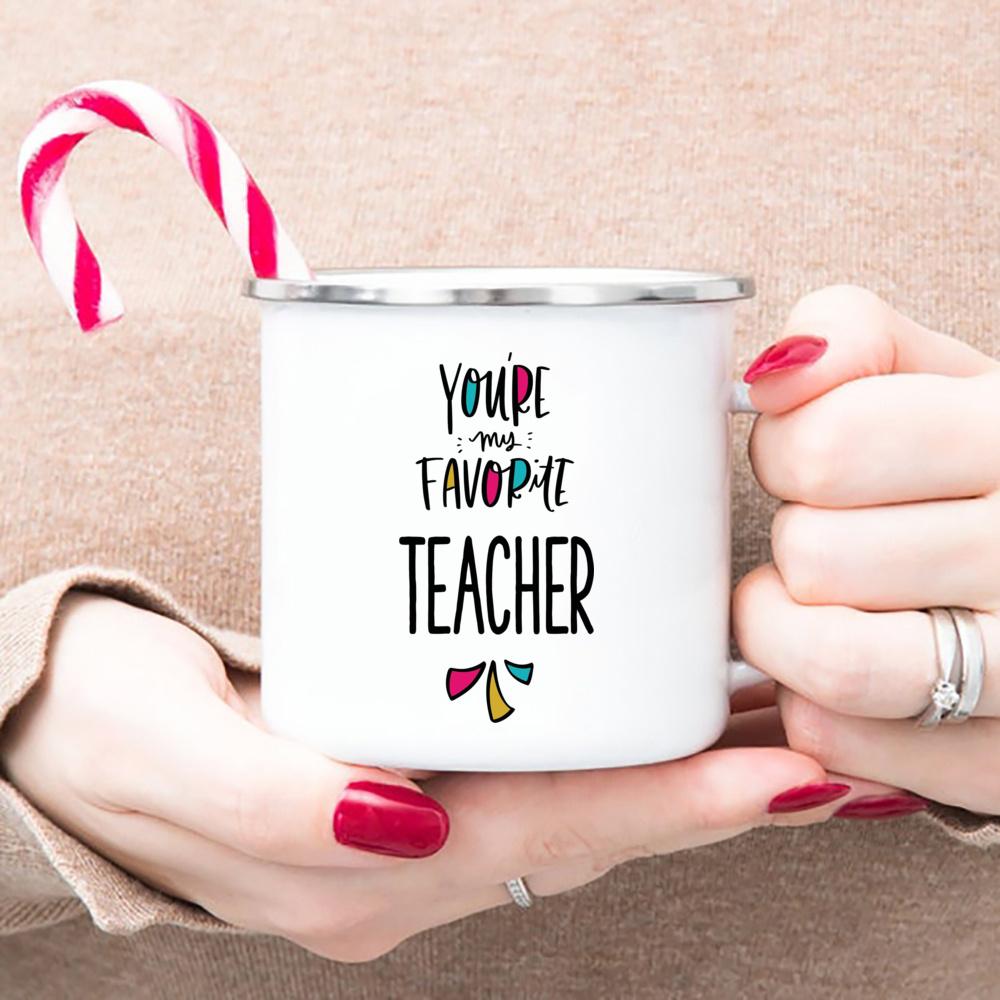 Ты мой любимый учитель. Эмалированная кружка. Лучший оригинальный и забавный подарок для учителя. Белая чашка с ручкой. Эмалированная кружка для кофе, чая, воды. 360ml