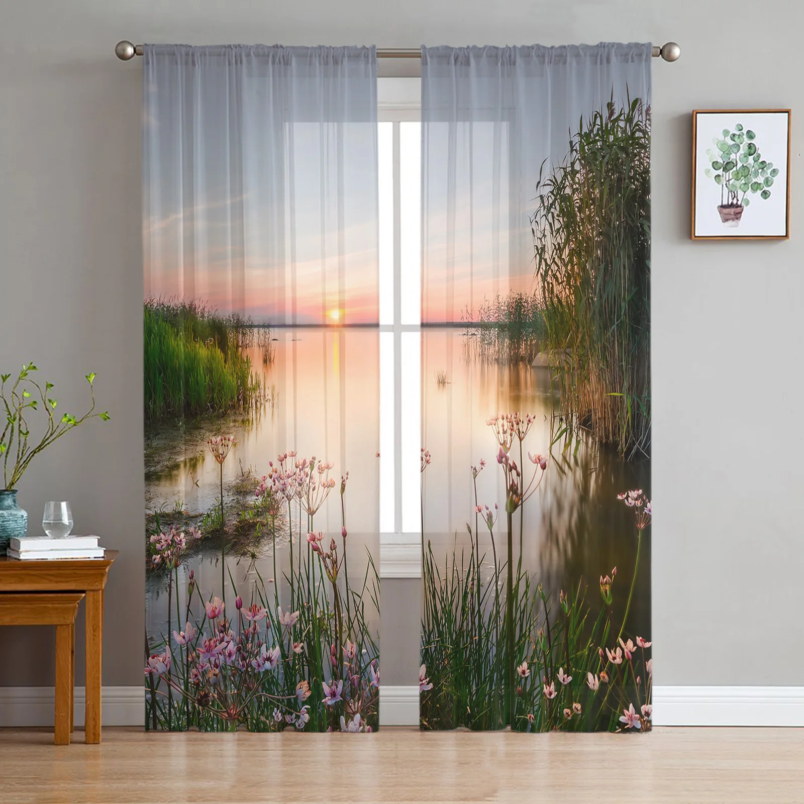 Тюлевые занавески для окон, занавески из вуали для окон в гостиной, для дома, гостиницы, балкона, озера, водно-болотного леса