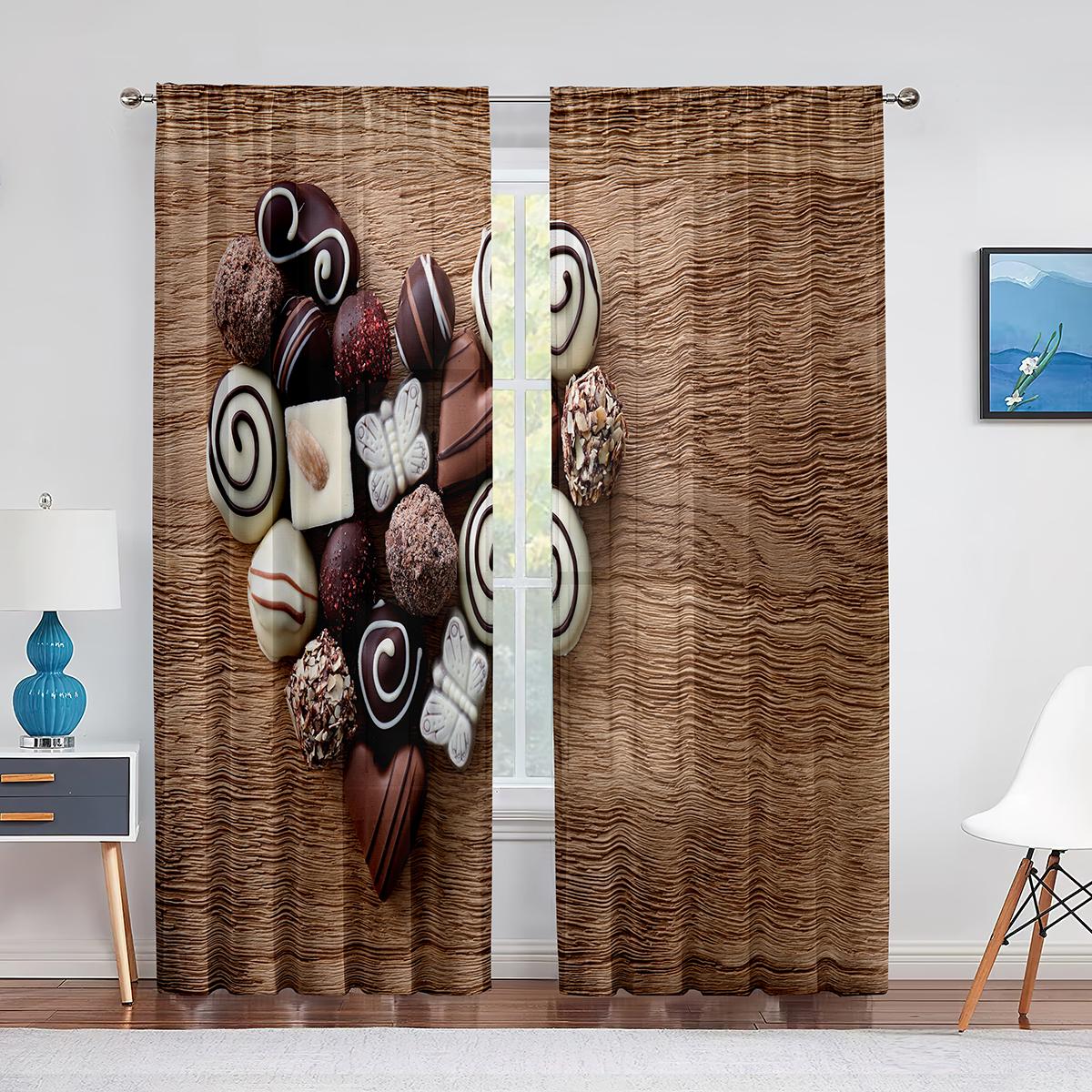 Тюлевые шторы с шоколадными шариками и конфетами для спальни, декора гостиной, шифоновая прозрачная вуаль, занавеска для балкона, кухни, домашние шторы 1 PCS W100XH250cm&Grommet Top