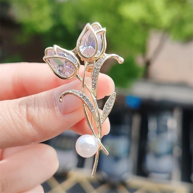 Тюльпан Брошь Женская Магнолия Темперамент Жемчужная Булавка Модная Цветочная Брошь Костюм Пальто Аксессуары Тенденция