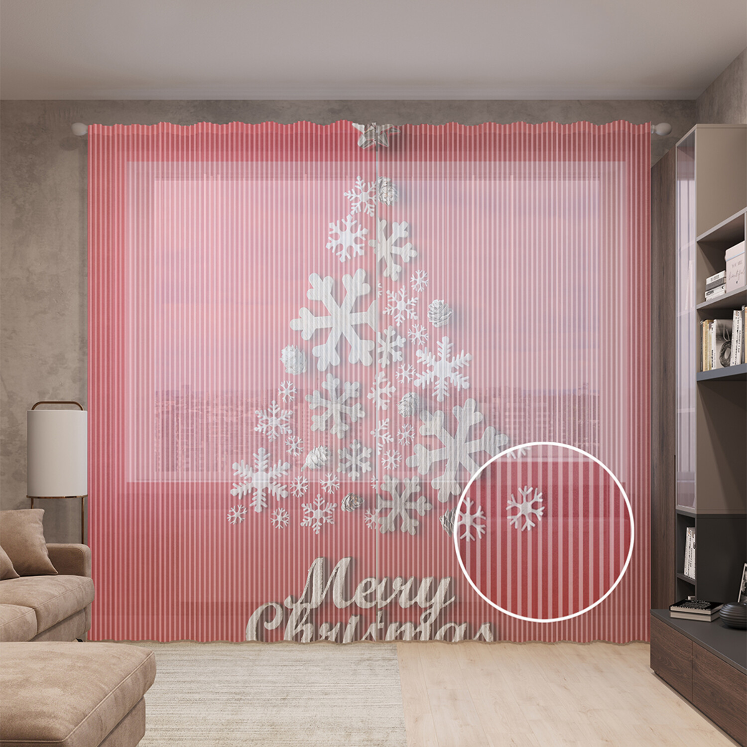 Тюль вуаль на шторной ленте с принтом JoyArty "Елочка из снежинок", 310х265 см, Елочка из снежинок