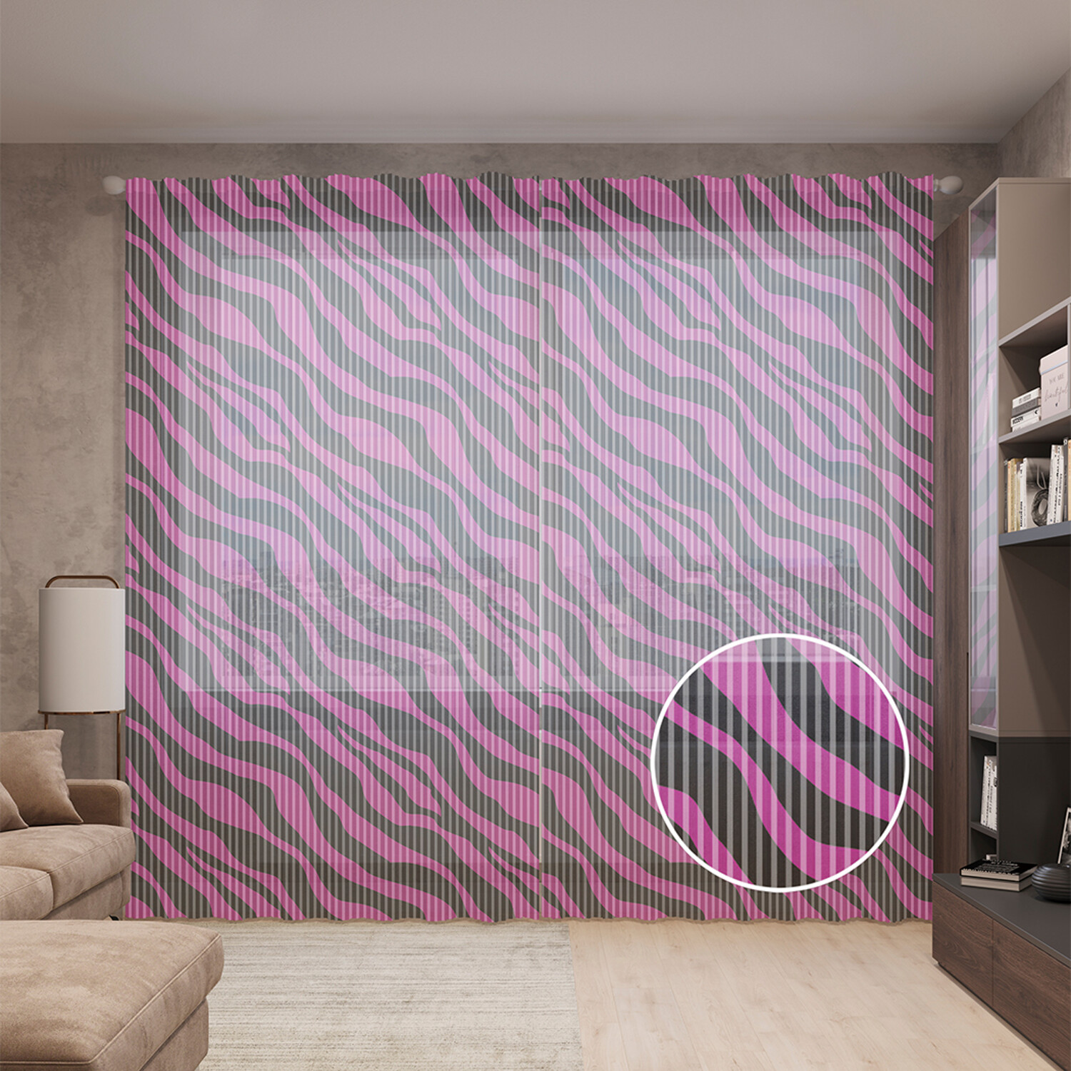 Тюль вуаль на шторной ленте с принтом JoyArty "Имитация зебровых полос", 310х265 см, Имитация зебровых полос