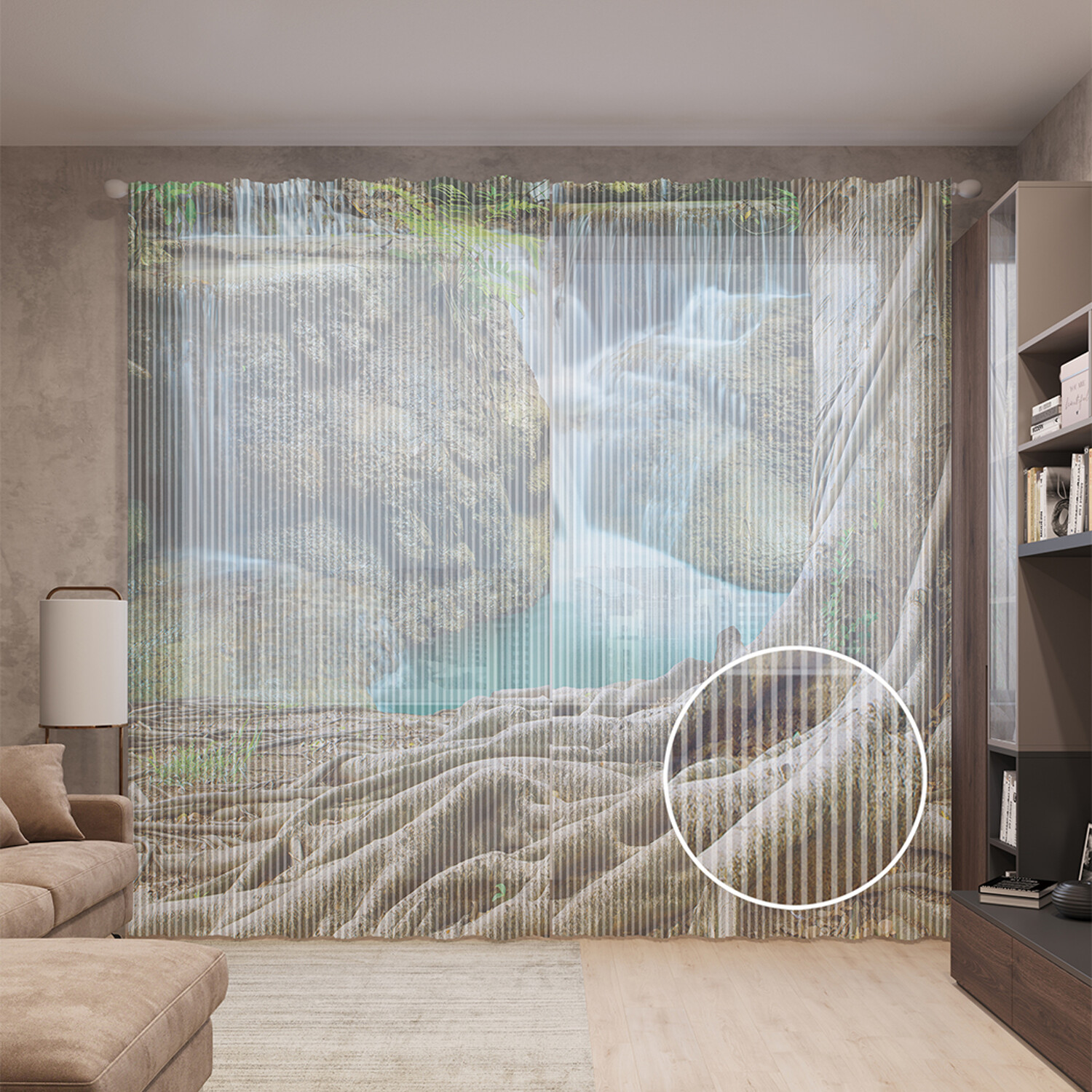 Тюль вуаль на шторной ленте с принтом JoyArty "Корни у водопада" 310х265 см, Корни у водопада