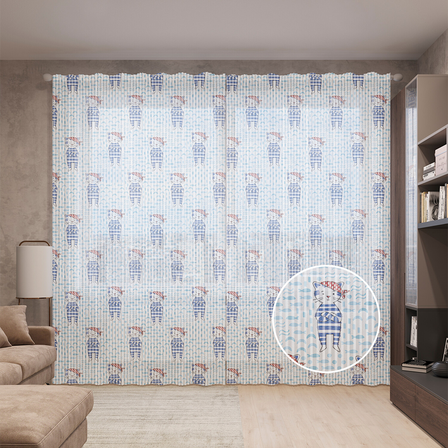 Тюль вуаль на шторной ленте с принтом JoyArty "Кот в косынке", 310х265 см, Кот в косынке