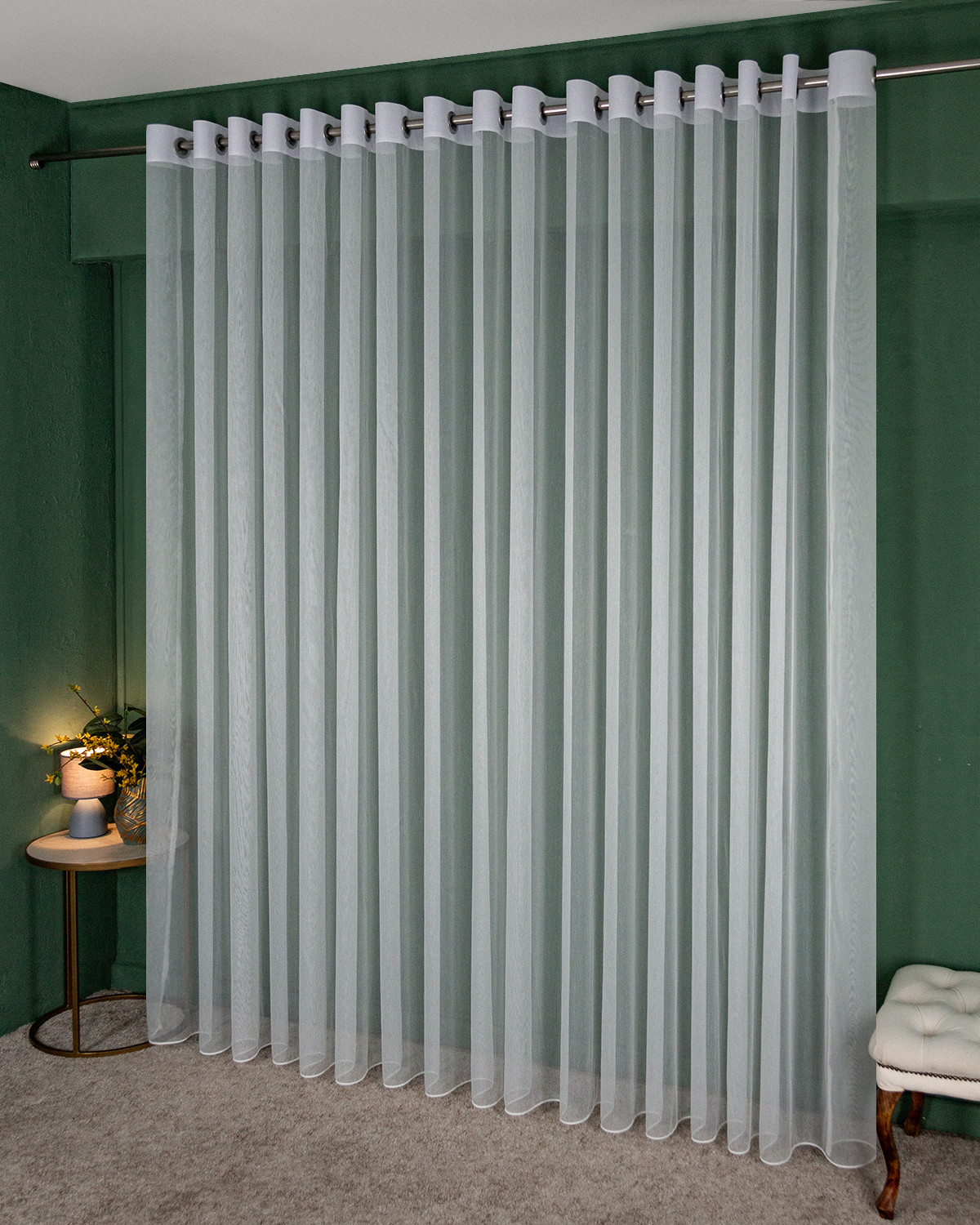 Ткань имеет выразительную сетчатую структуру с утолщенными волокнами, что придает ей эффектный вид. Фактурность тюля позволяет имитировать натуральное полотно, а благодаря светлым оттенкам, ткань мягко рассеивает солнечные лучи На ощупь материал плотный, прекрасно формирует объемные складки при драпировке, а утяжелитель по низу полотна поддерживает их ровную форму. Тюль смотрится свежо и легко, отлично сочетается с любыми видами штор