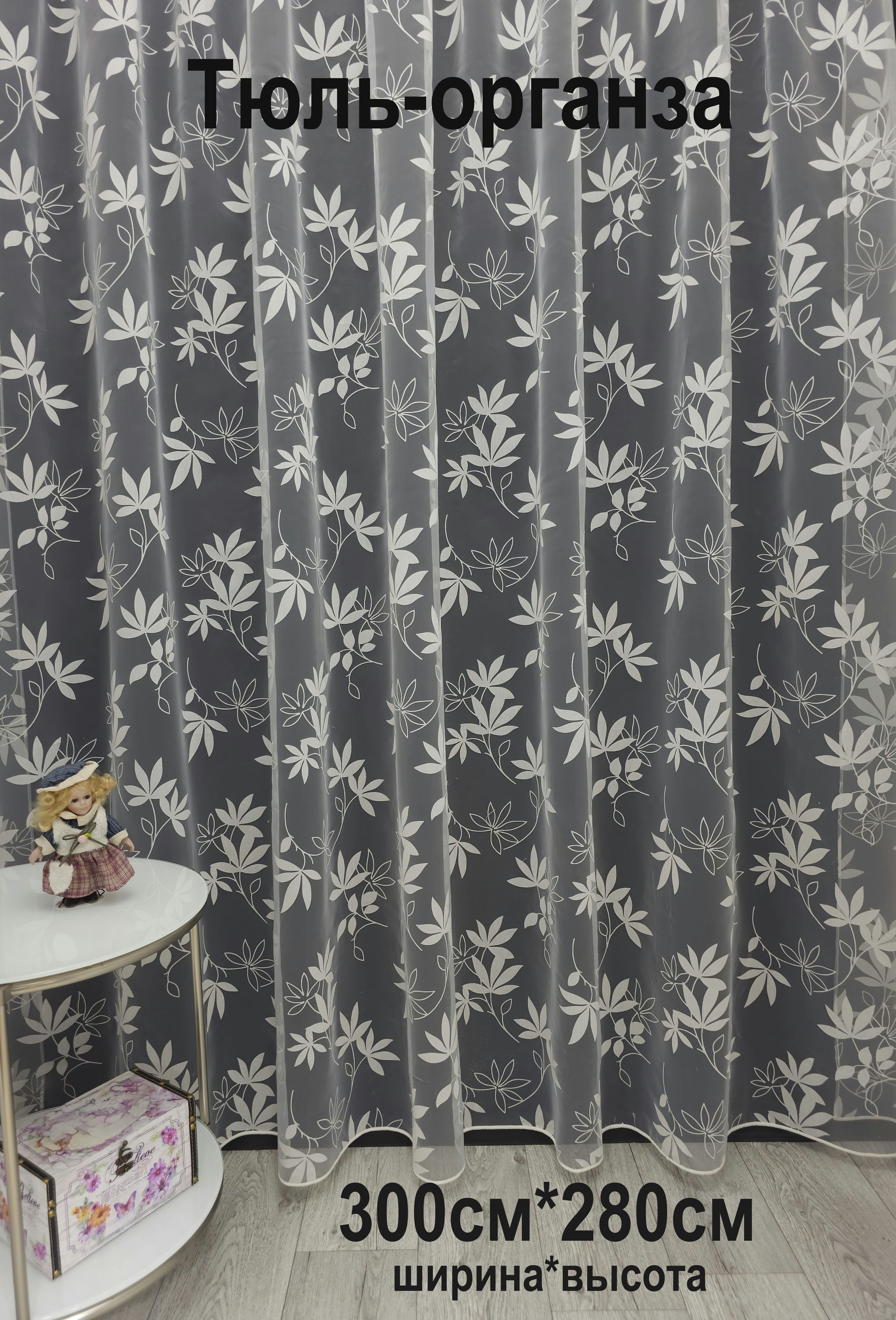 Тюль Tex Valley органза Листики 300х280 см 1 шт Кремовый, 1119