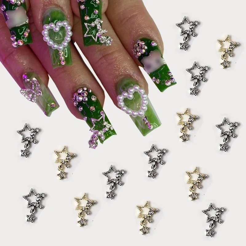 10pcs 3D Stars Crystal Nail Charms Silver Metal Dangle Nails Decorations Manicure Accesorios Supplies
