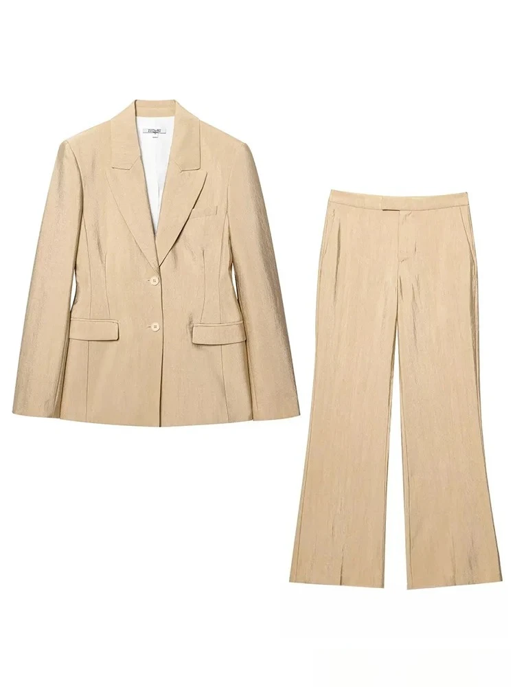KONDALA винтажный шикарный офисный женский однотонный костюм с зубцами, однобортный пиджак с карманами, прямые свободные брюки на молнии, модные комплекты 2025 года