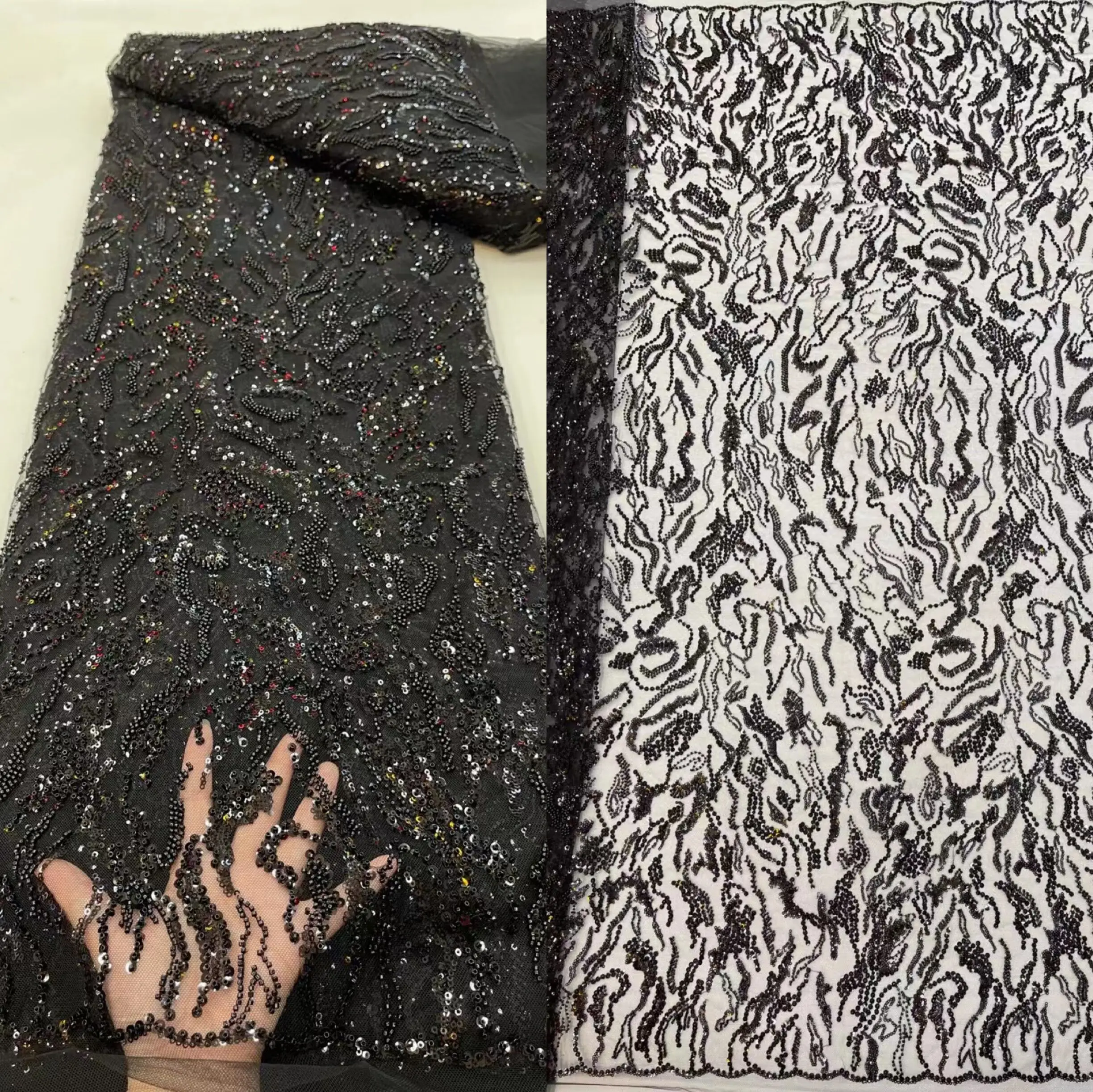 Тяжелая бисерная кружевная ткань, искусственная нигерийская свадебная ткань, фатиновая кружевная ткань