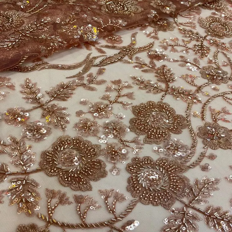 Тяжелая вышивка ручной работы, нигерийская Свадебная кружевная ткань с бисером для вечерние TS9462