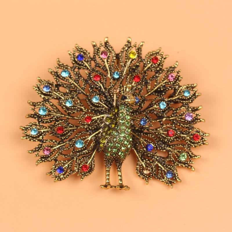 Тяжелая промышленность Полная дрель Павлин Открытый экран Брошь Стразы Животное Булавка Женское зимнее пальто Свитер Корсаж Аксессуары Теперь разноцветный