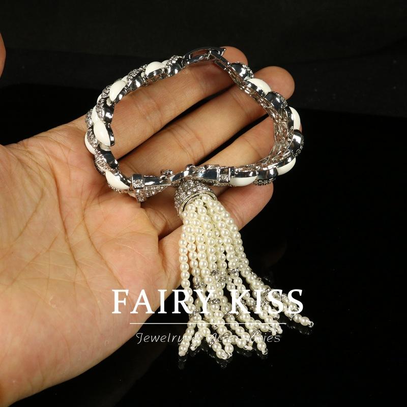 Тяжелая промышленность Французская белая эмаль Подтечная глазурь Подвеска с бахромой из бриллиантов Полный бриллиант Изысканный роскошный темперамент Премиальный браслет