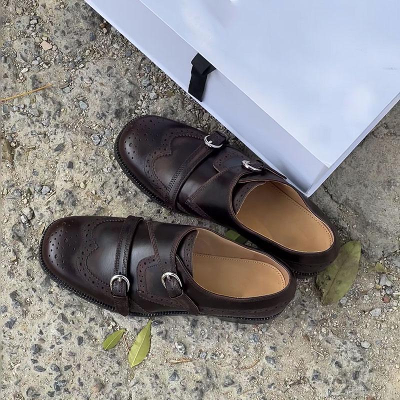 Тяжелая промышленность полированная ручная резьба коровья кожа женские нишевые толстый каблук толстая подошва броги маленькие кожаные туфли одинарная обувь 40 черный коричневый