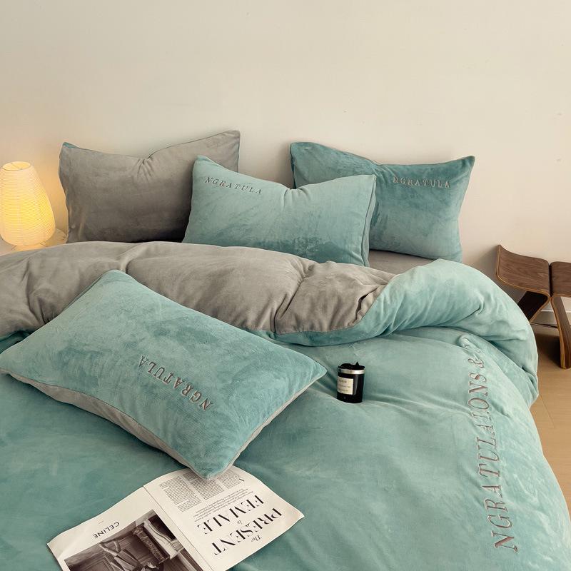 Тяжелый бархатный комплект постельного белья из четырех предметов: Двухцветная строчка, плюшевый и теплый пододеяльник с простынями, приятными для кожи 200x230cm Single Duvet Cover