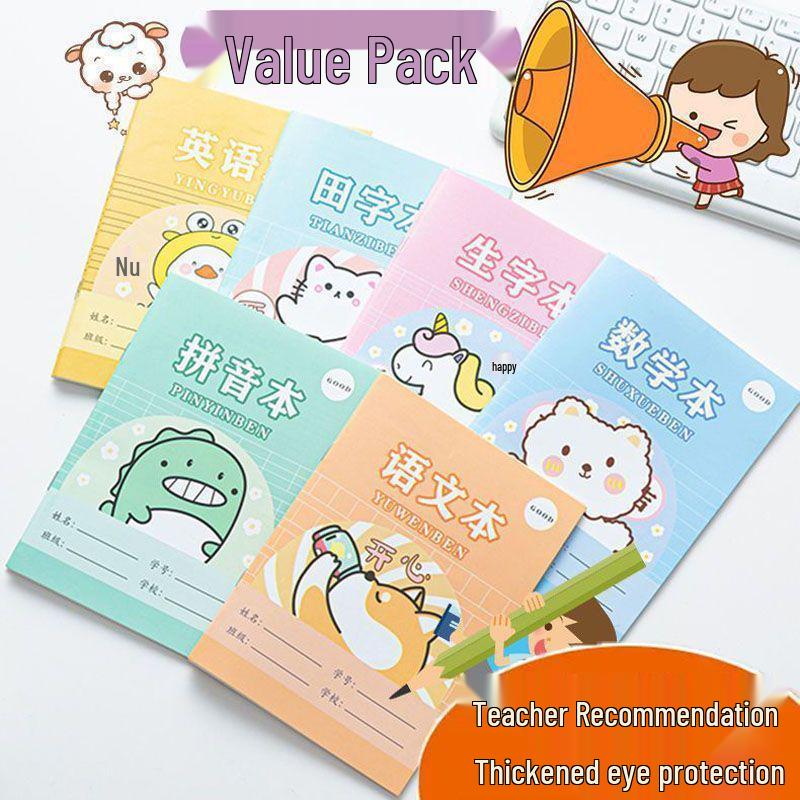 Тяньцзыгэ Мультяшная рабочая тетрадь для учеников начальной школы: Пиньинь, китайский, математика