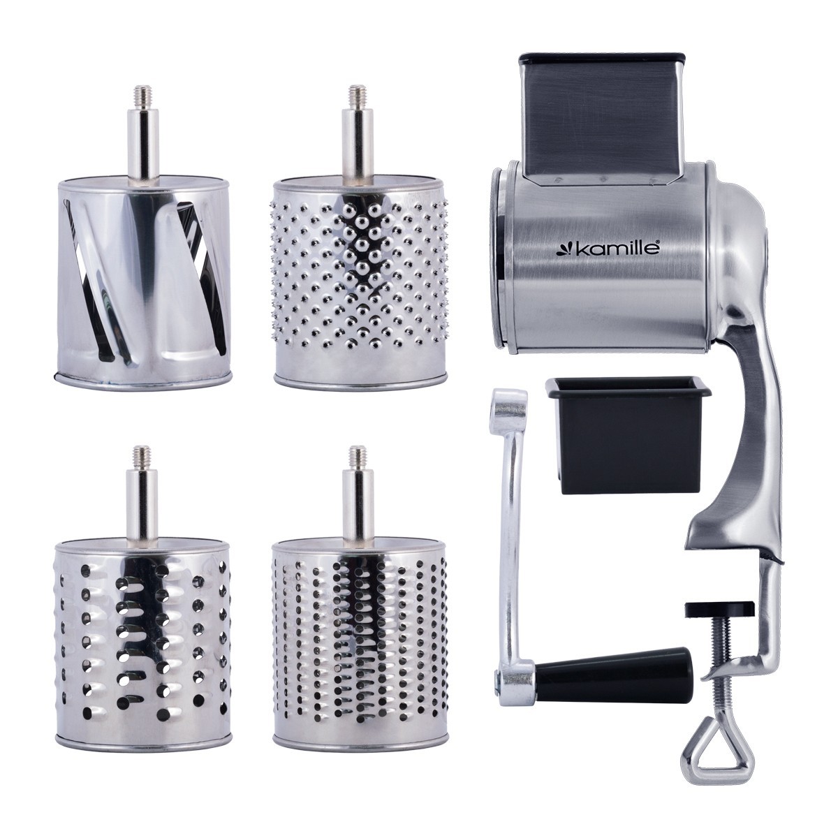 [html]Механическая тёрка — будет незаменимым аксессуаром на вашей кухне.Тип: механическая тёркаМатериал: нержавеющая стальЦвет: серебристыйВ комплекте: зажим, барабанные ножи - 4 штОсобенности:очень проста и удобна в использованиизанимает мало месталегко чистится[/html]