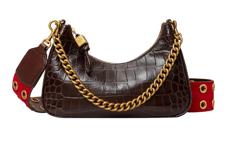 Сумка MERCER из тисненой кожи, через плечо, кросс-боди среднего размера для женщин, темное красное дерево TORY BURCH