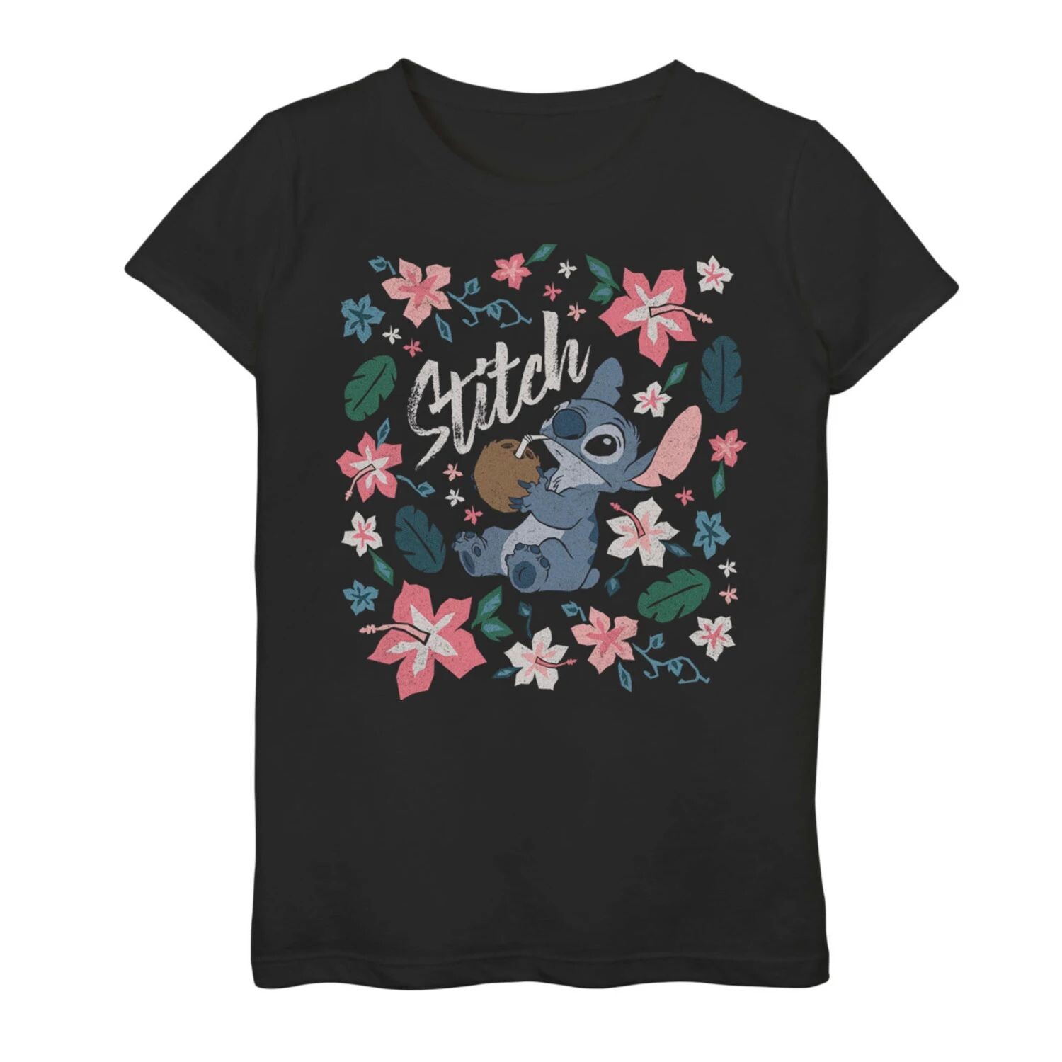 Футболка с тропическим цветочным рисунком Disney's Lilo & Stitch для девочек 7–16 лет Licensed Character