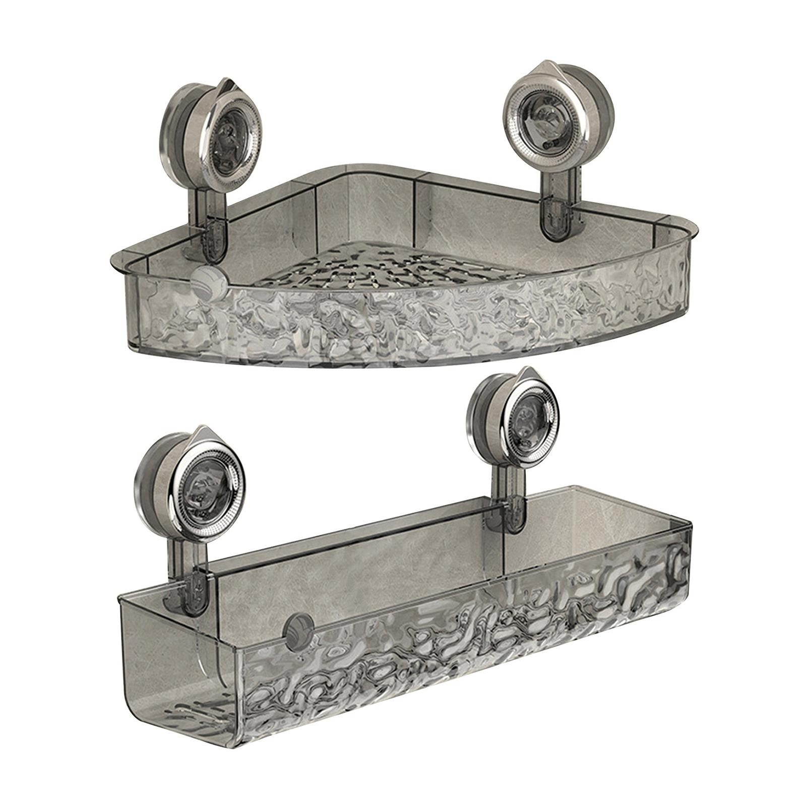 Угловая полка для хранения в ванной комнате Прозрачная Треугольная Толстая Без перфорации Противоскользящая Сильная присоска Отличная грузоподъемность Органайзер для душа серый