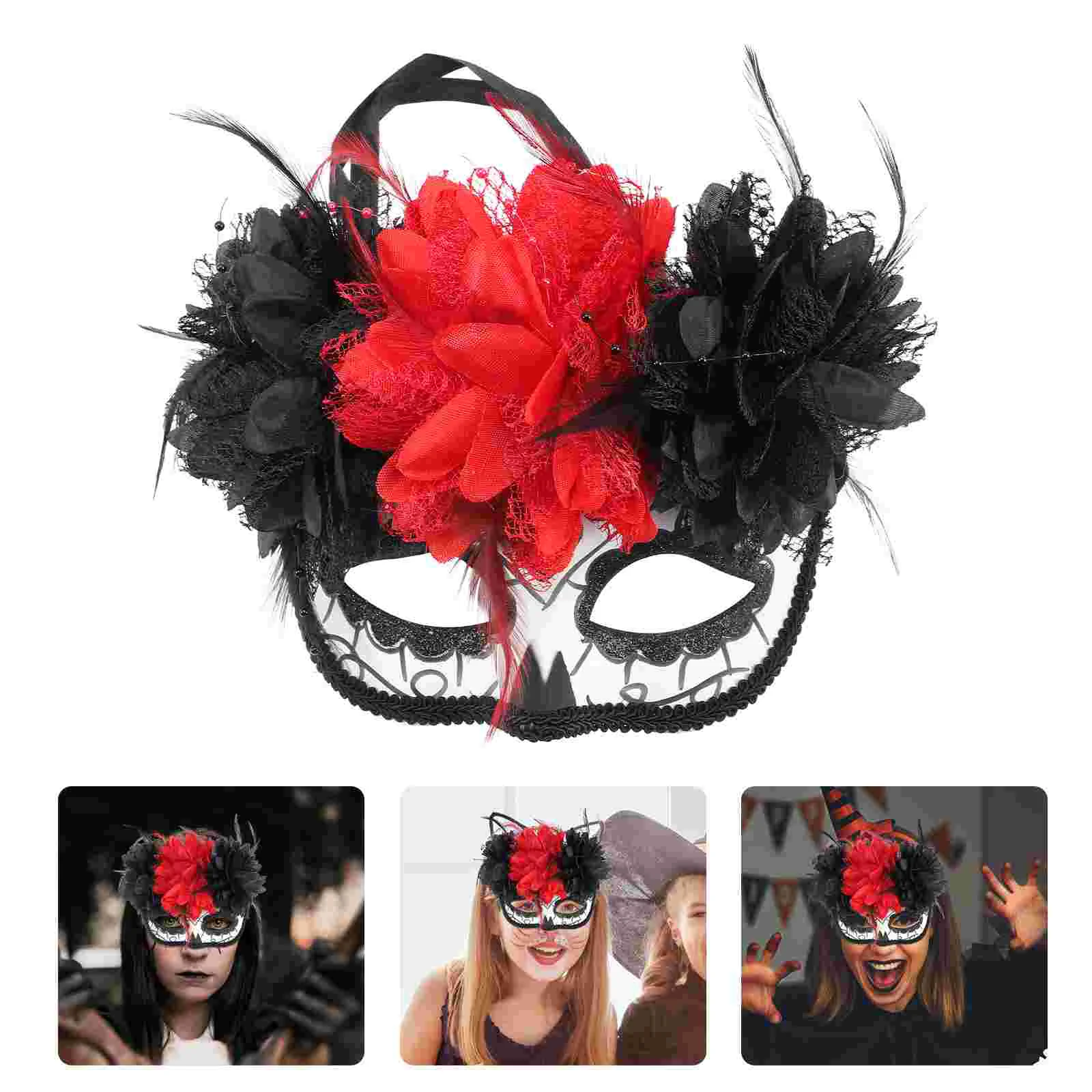 Masquerade Mask Day of The Dead for Cosplay with Flower Skull Floral Women Half Face