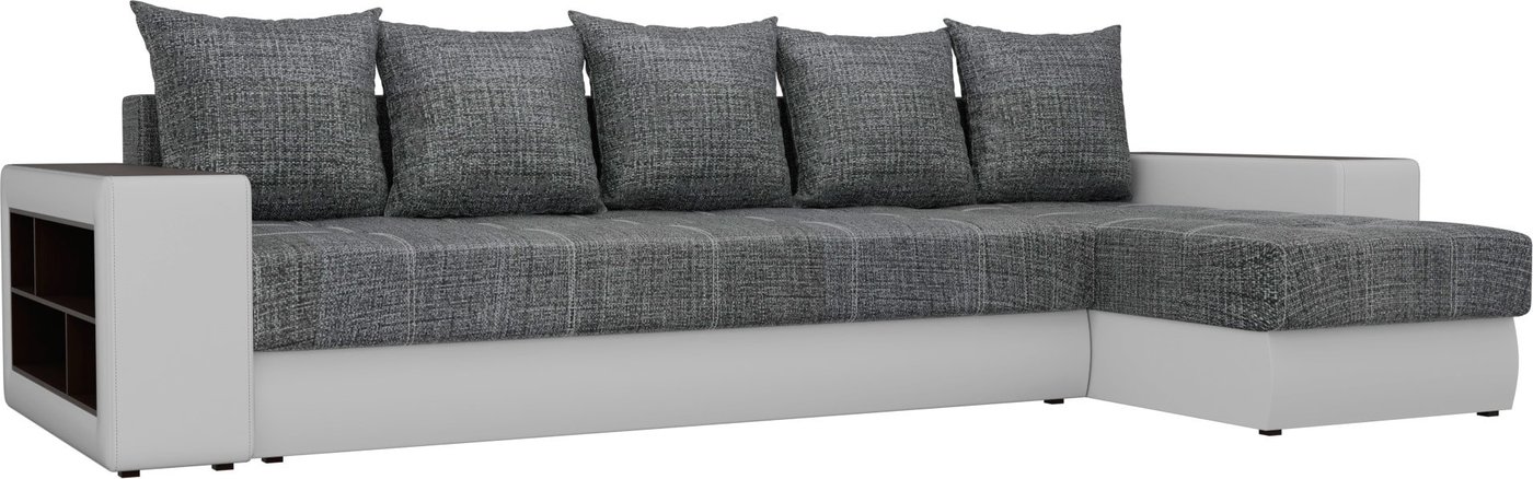 Угловой диван Лига диванов Дубай 105796 (правый, рогожка/экокожа, серый/белый)