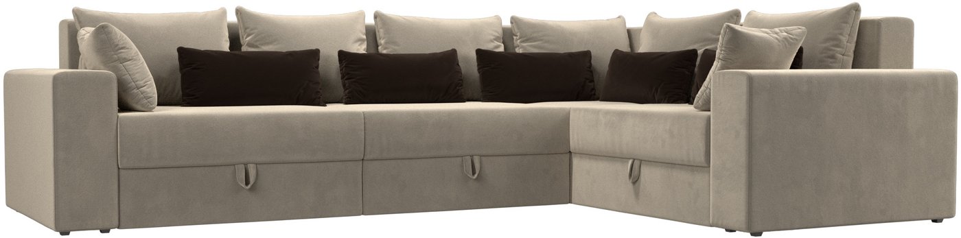 Угловой диван Лига диванов Майами Long 92 правый (микровельвет коричневый/подушки бежевые/коричневые)