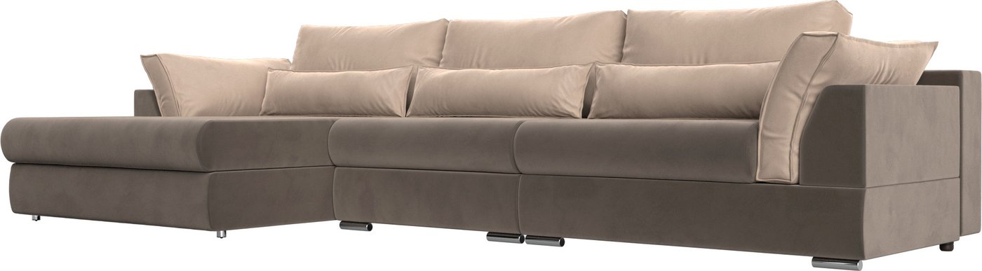 Угловой диван Лига диванов Пекин Long левый (велюр коричневый/подушки велюр бежевый)