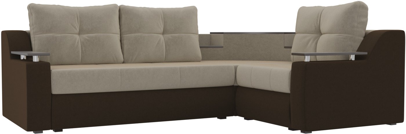 Угловой диван Лига диванов Тесей 269 правый 107621 (микровельвет, бежевый/коричневый)