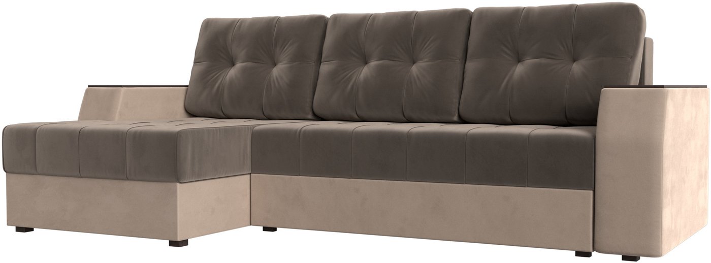 Угловой диван Лига диванов Эмир БС левый (велюр коричневый/бежевый)