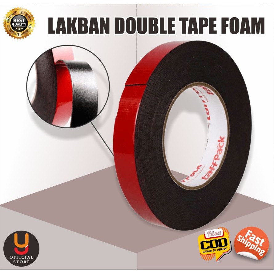 Doubletape Busa Foam Hitam Isolasi Lakban 2 Sisi Lem Perekat Aksesoris Mobil Motor Multifungsi
