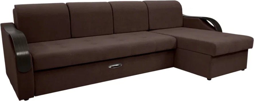 Угловой диван Сириус Лидер-6 с оттоманкой ППУ 300x165 (Eva 04 велюр темно-коричневый)