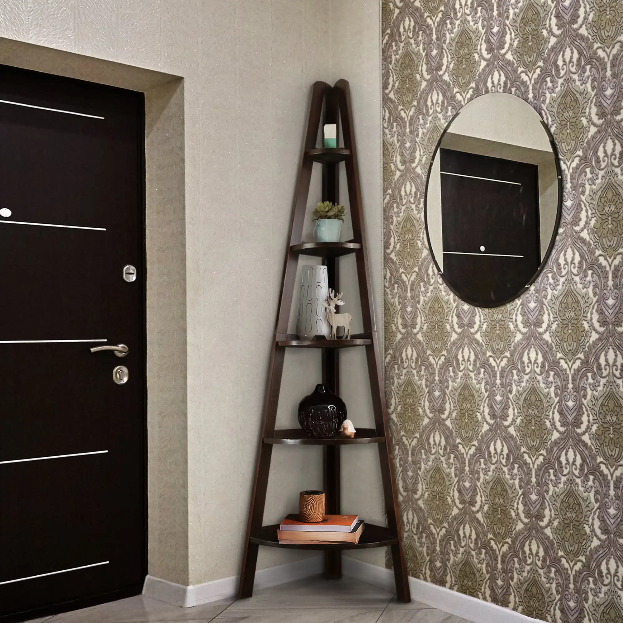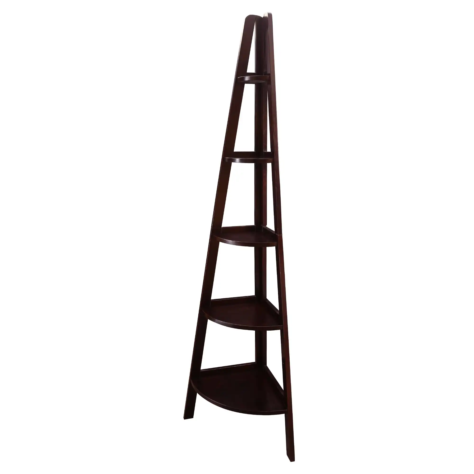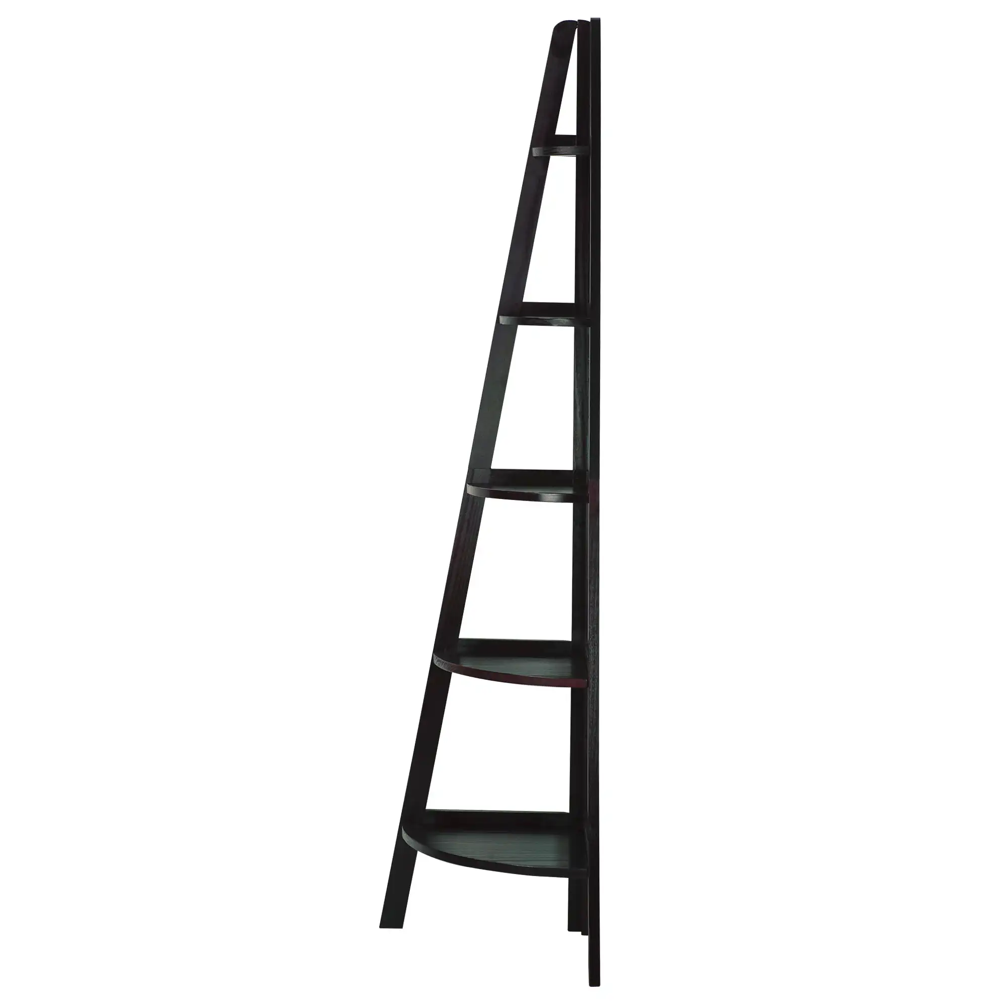 Угловой книжный шкаф с 5 полками и лестницей-Эспрессо