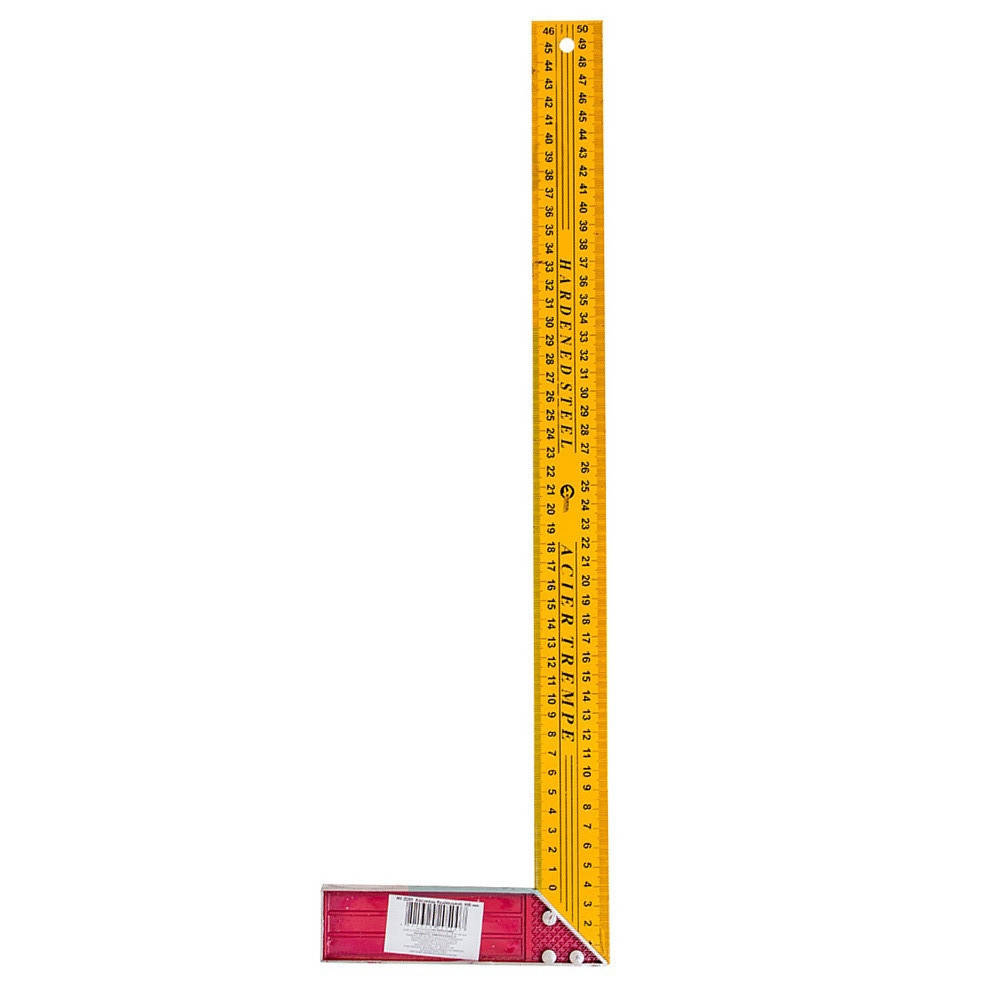 Угольник строительный Intertool MT-2050 необходим для разметки и определения прямых углов, в первую очередь, в строительно-ремонтных работах.Диапазон измерения угольника составляет до 500 мм. Двустороннее плечо инструмента с нанесением разметки с обеих сторон позволит максимально просто и точно сделать отметки даже в самых труднодоступных местах. Плечо закреплено в колодке тремя заклепками , что предотвращает его расшатывание и обеспечивает максимальный срок службы инструмента.