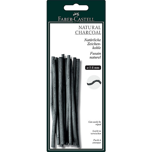 Уголь натуральный Faber-Castell "Pitt", Ø 5-8мм, круглый, 12шт., картон. упак, Черный, Уголь натуральный Faber-Castell "Pitt", Ø 5-8мм, круглый, 12шт., картон. упак.