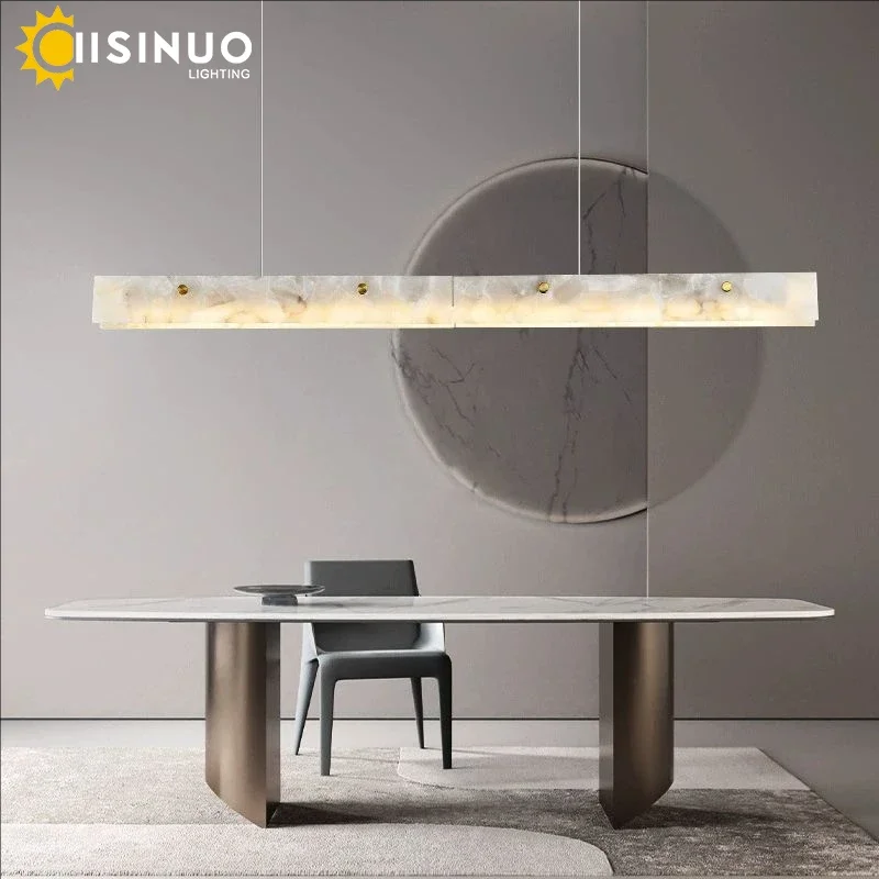 Luxury Linear Pendant Light LED Minimalist Natural Marble Chandelier Hanging Ceiling Fixtures for Kitchen Island Dining Room Bar