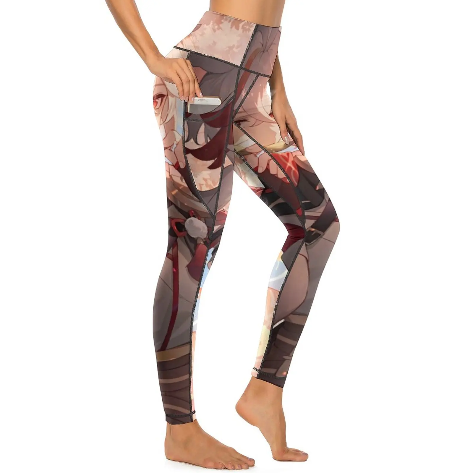 Ударные штаны для йоги Genshin с карманами, леггинсы с принтом Kazuha, спортивные эстетические колготки для йоги с высокой талией, быстросохнущие леггинсы для спортзала