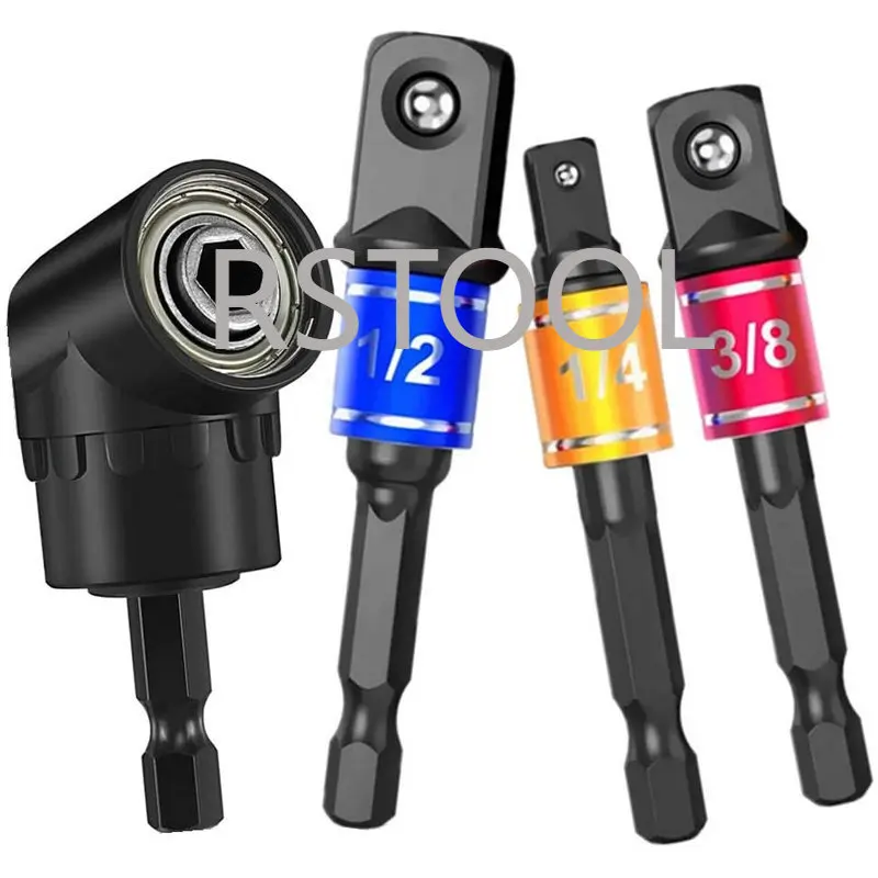 Ударный торцевой ключ, 3 шт., 1/4 дюйма, 3/8 дюйма, 1/2 дюйма, набор удлинителей, прямоугольный драйвер на 105 градусов, удлинитель, адаптер для дрели