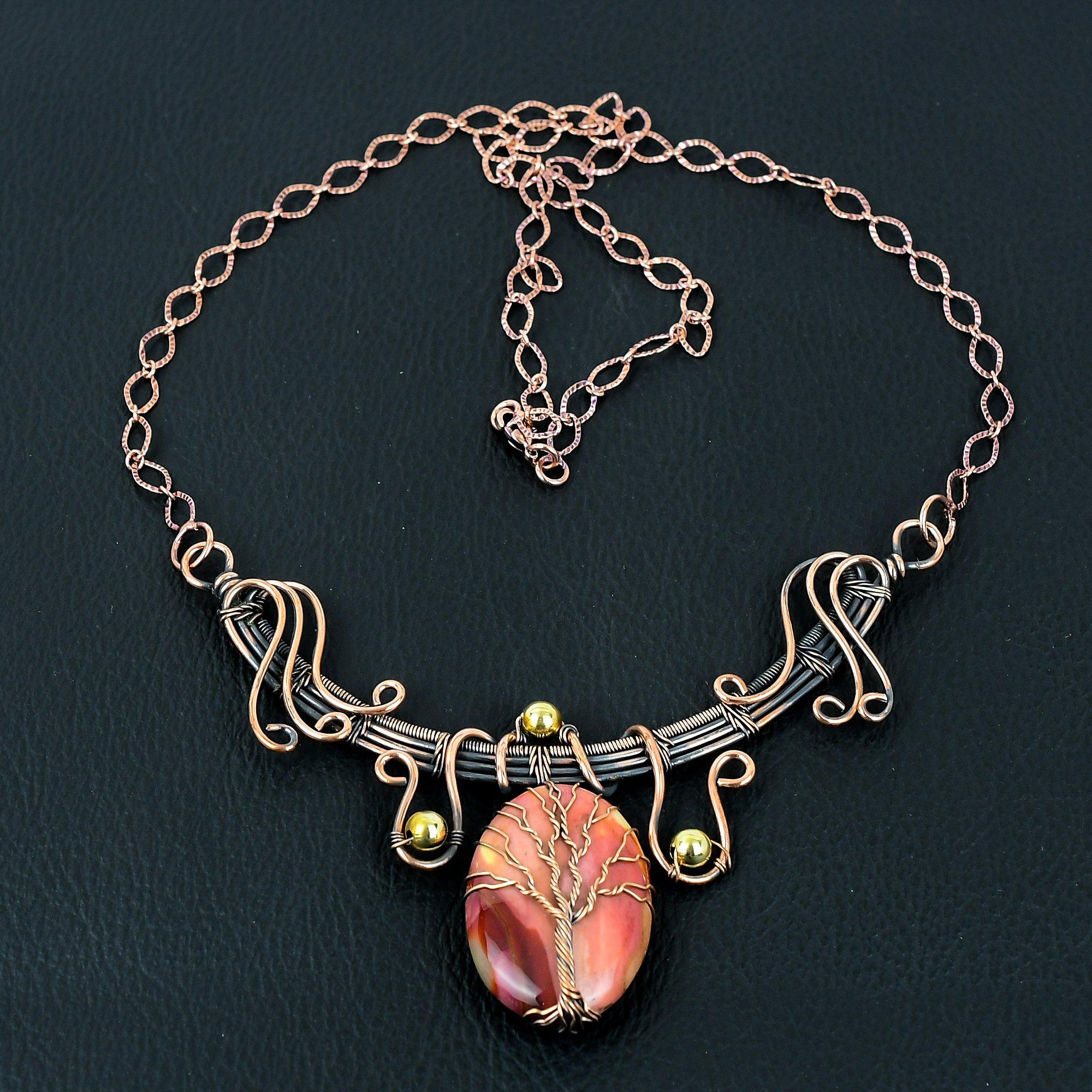 Удивительный драгоценный камень мукаит, ручная работа, чистая медная проволока, ювелирное ожерелье для любви 18 Inches оранжевый
