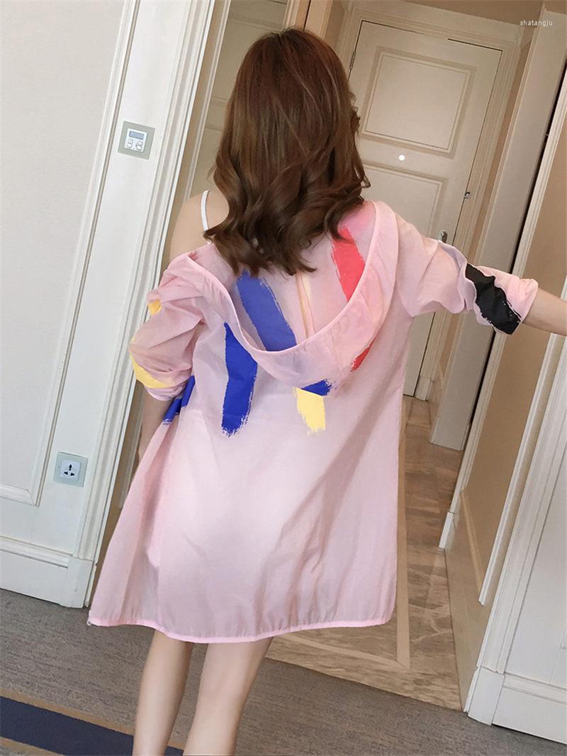 Women' Jackets Sun Protection Clothing Women' Long Section Cardigan Jacket 2023 Summer Shirt Print Tops Anti-UV Loose Female Thin Coat, White
