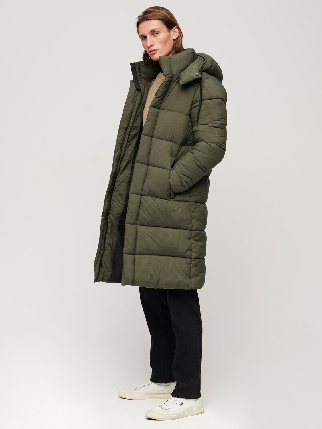 Удлиненная куртка-пуховик Ripstop Superdry, темный мох зеленая сетка, Зеленый, Удлиненная куртка-пуховик Ripstop Superdry, темный мох зеленая сетка