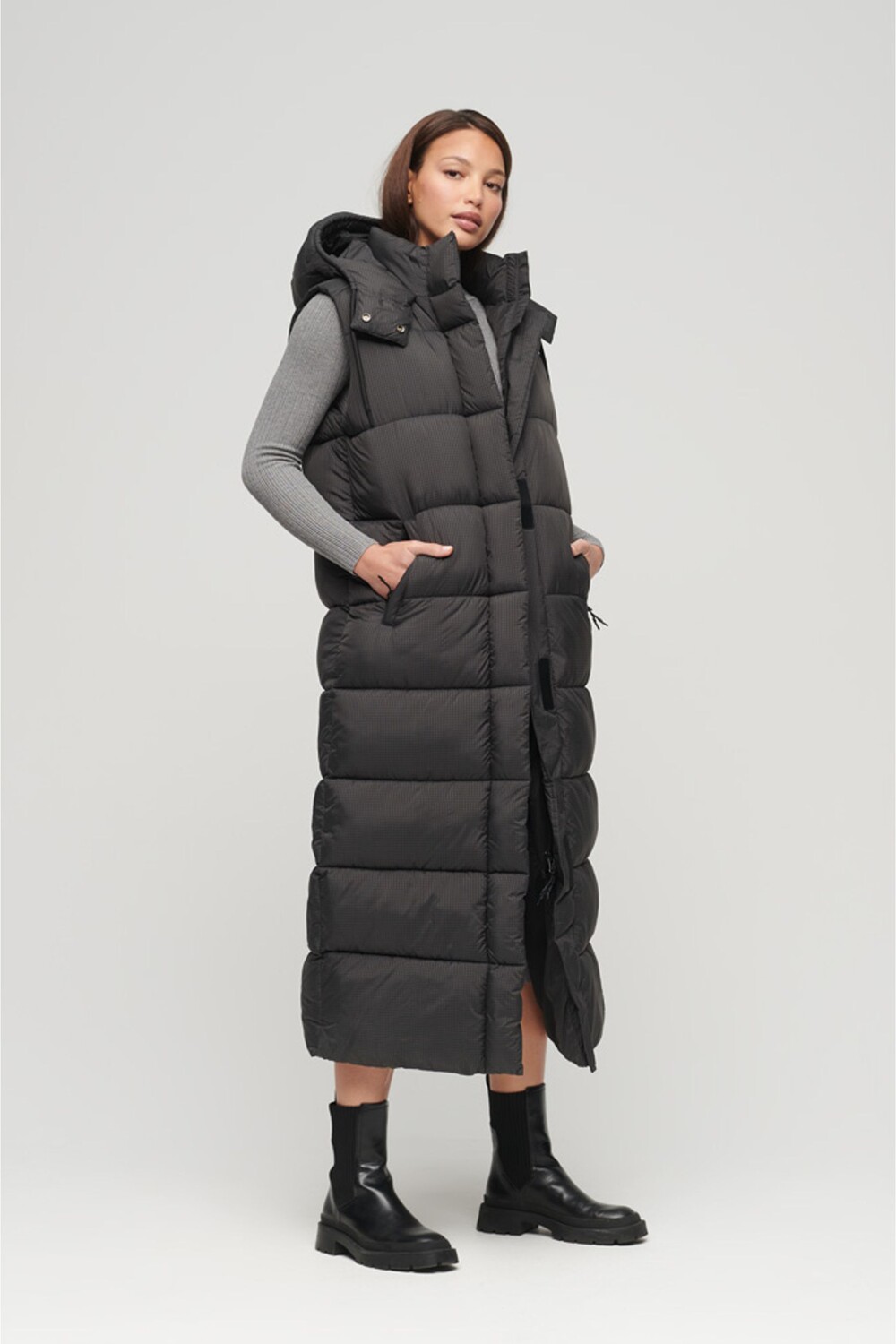 Удлиненный жилет из рипстопа с капюшоном Superdry, черный