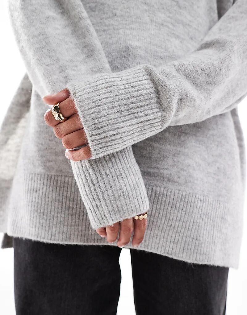 Удлиненный мягкий джемпер светло-серого меланжевого цвета Vero Moda