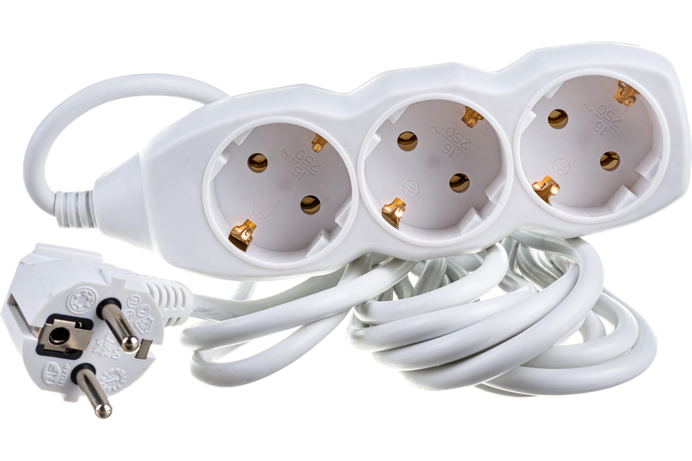 Удлинитель Космос ПВС, 3-розетки, 5м, белый (YKsm5m-3g-Z(K)), ПВС